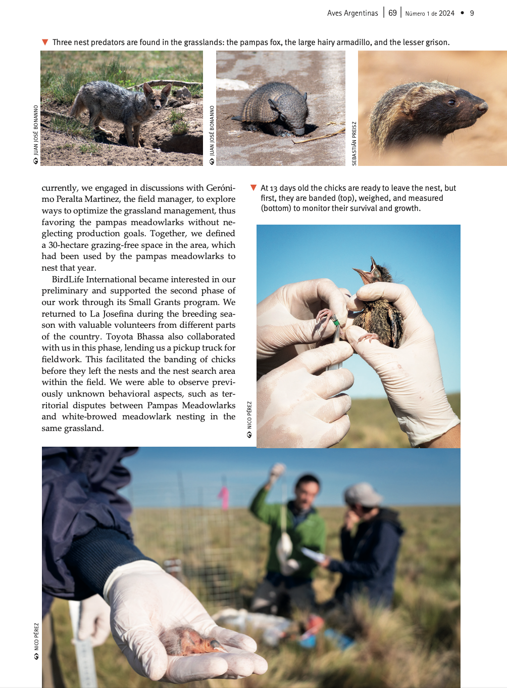 En la nota principal de la revista se aborda el proyecto de conservación de la Loica Pampeana, el trabajo que vienen realizando @avesargentinas con su @alianzadelpastizal, y es una gran alegría poder colaborar con la foto de portada y muchas fotos más de la nota, donde se muestra al equipo de la @alianzadelpastizal en acción.